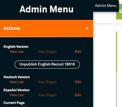 An overhaul of a dated, barebones admin menu that never got attention due to outside client needs. This refresh allowed the admin side to follow suit with our website redesign to bring it into a more modern look and feel that fit our branding. Each page has its own dynamically generated JSON menu items including different language versions, the page's unique SEO, the page's audit trail, and more. Additionally I added some bonus settings in a easy to access toolbar at the bottom that were frequently used by admins and were previously hidden inside nested menus.